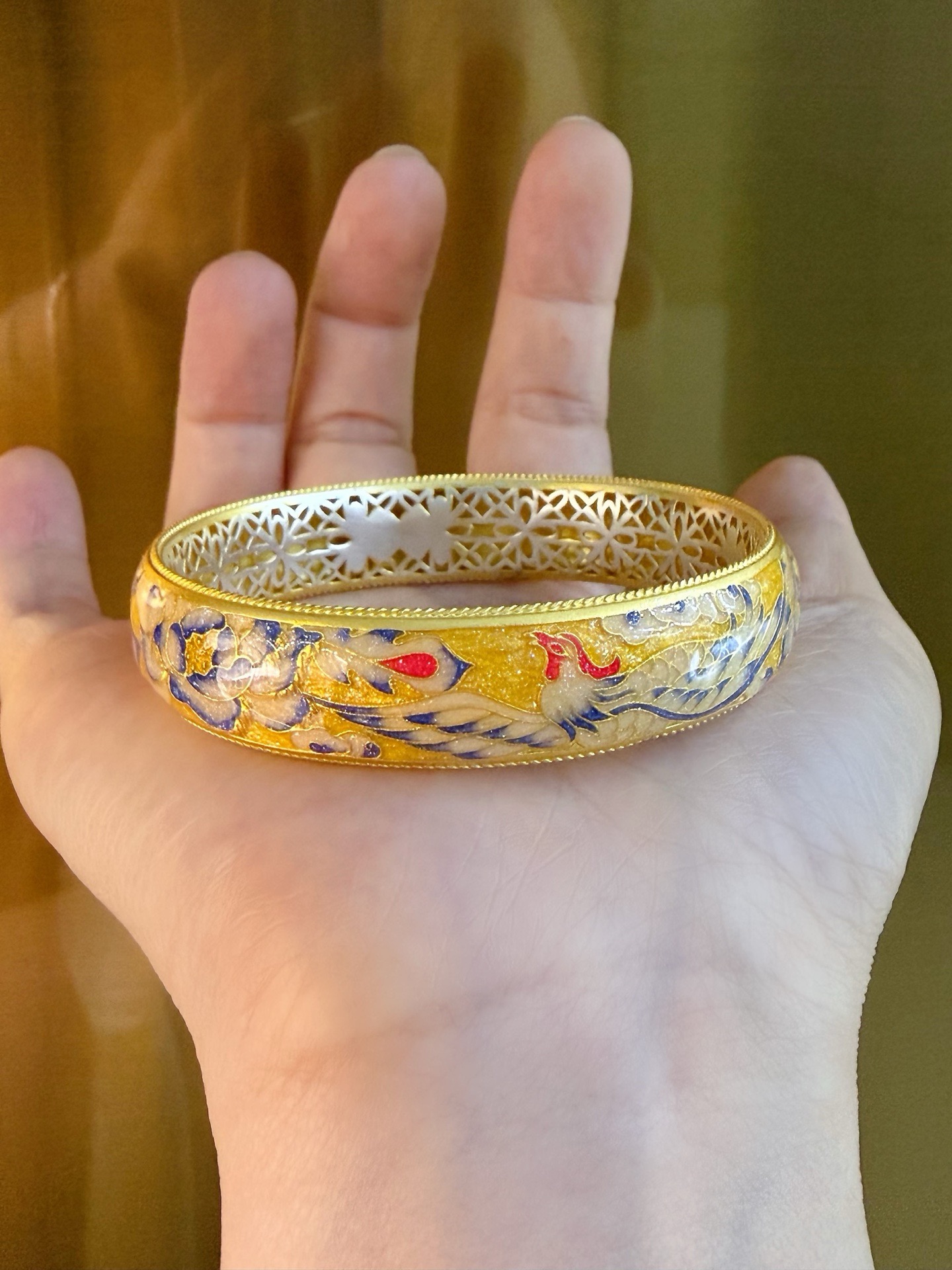"A Deer Blooms" pure silver 9999 opening gold-painted bracelet women's sterling silver enamel Chinese style gift for the elders
