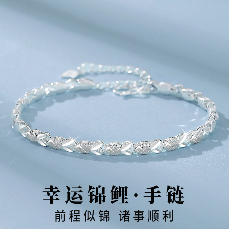 999 full silver koi bracelet female sterling silver light luxury niche high-end engraving birthday gift for girlfriend girlfriend