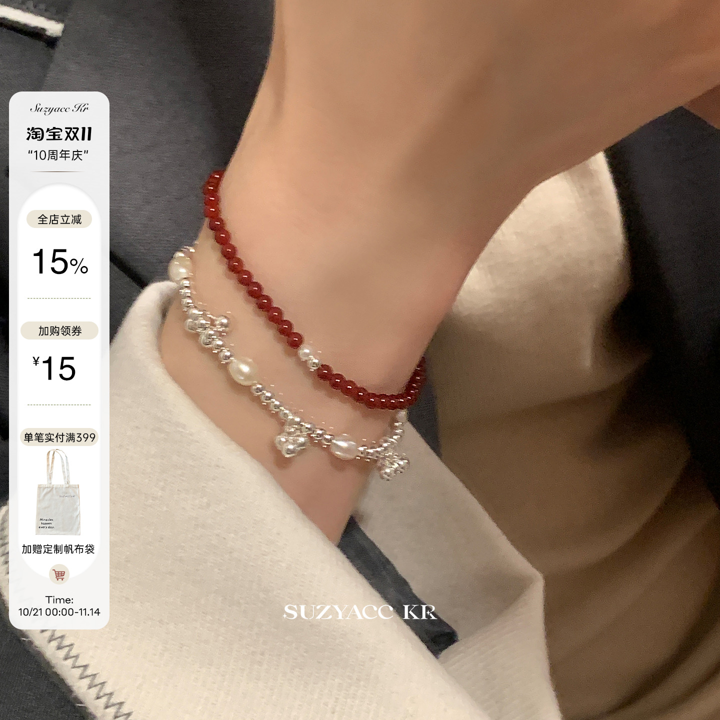 suzyacc kr sterling silver red agate beaded bracelet light luxury niche exquisite bracelet vintage versatile high-end hand jewelry