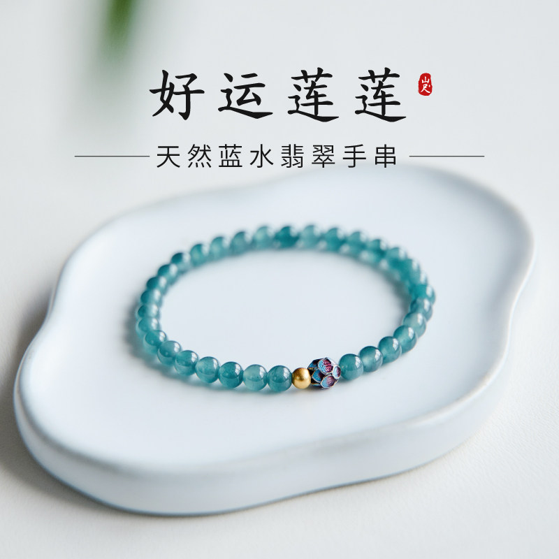 Real jade bracelet natural ice seed jade blue water exquisite lotus bracelet women's dangerous material light luxury high-end feeling|lotus emerald