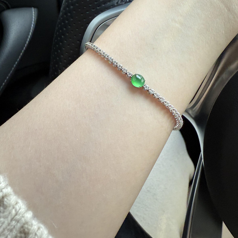 Natural jadeite A goods egg face ice seed yang green simple design women's bracelet versatile bracelet high-end temperament exquisite