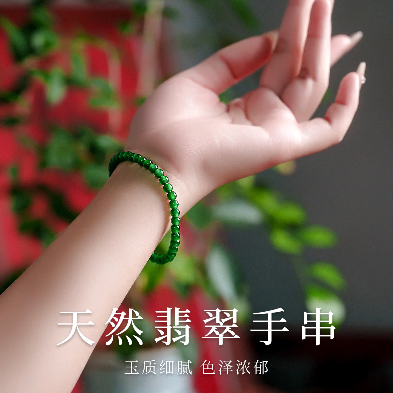 Genuine natural A goods jade Burmese imperial green beads millet beads female jade bracelet gift for girlfriend