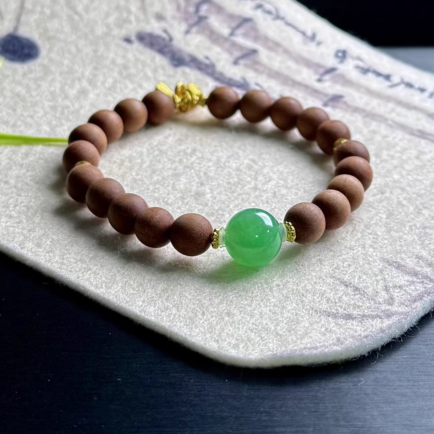 Qimei jade beads Myanmar natural A jade Bingyang green foot gold wooden bracelet