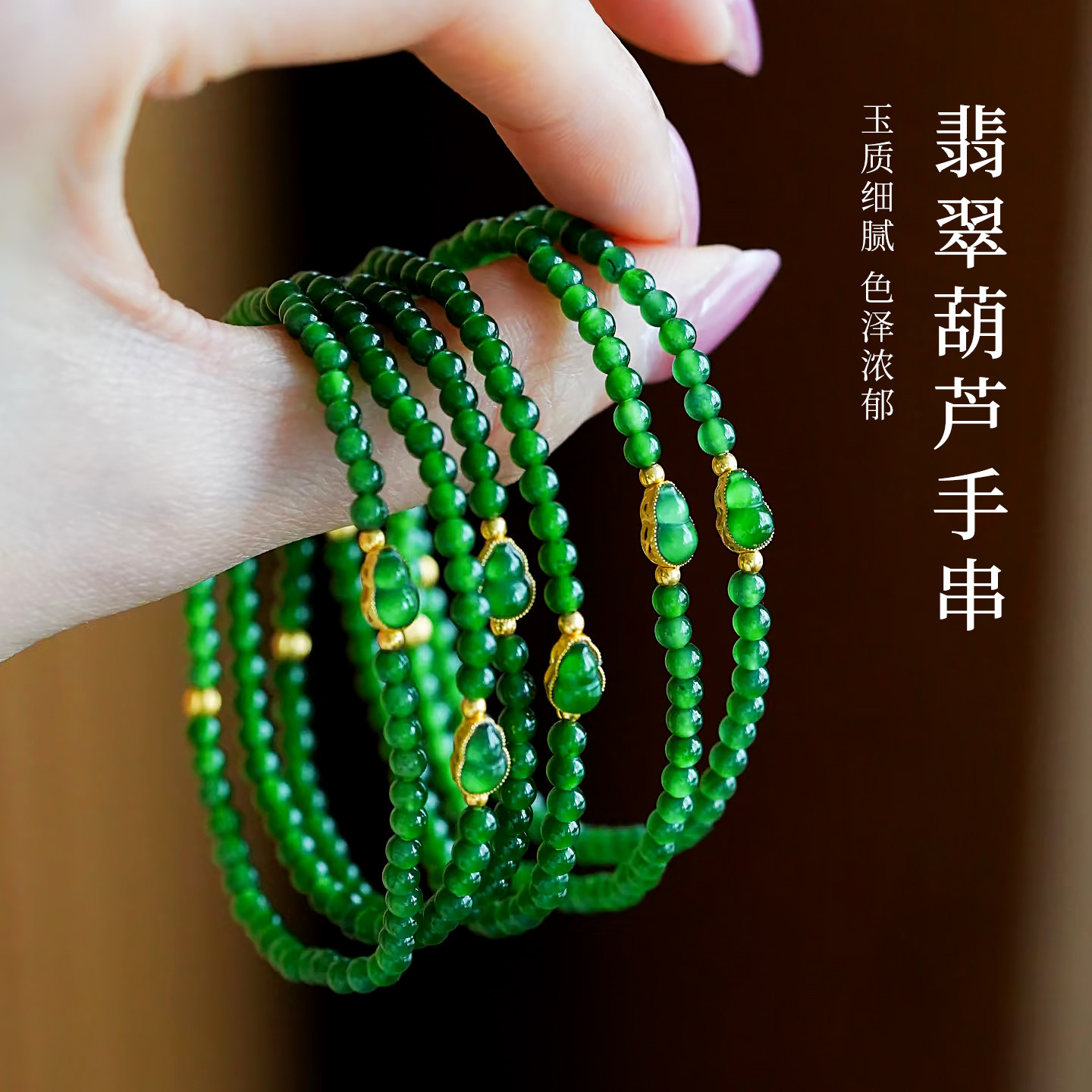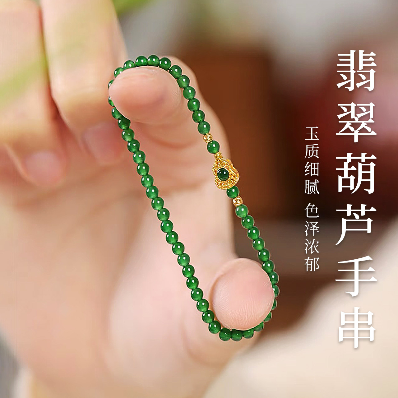 Natural ice species Myanmar jade A goods full of spicy yang green bracelet gourd jade chain female gift millet beads natal year