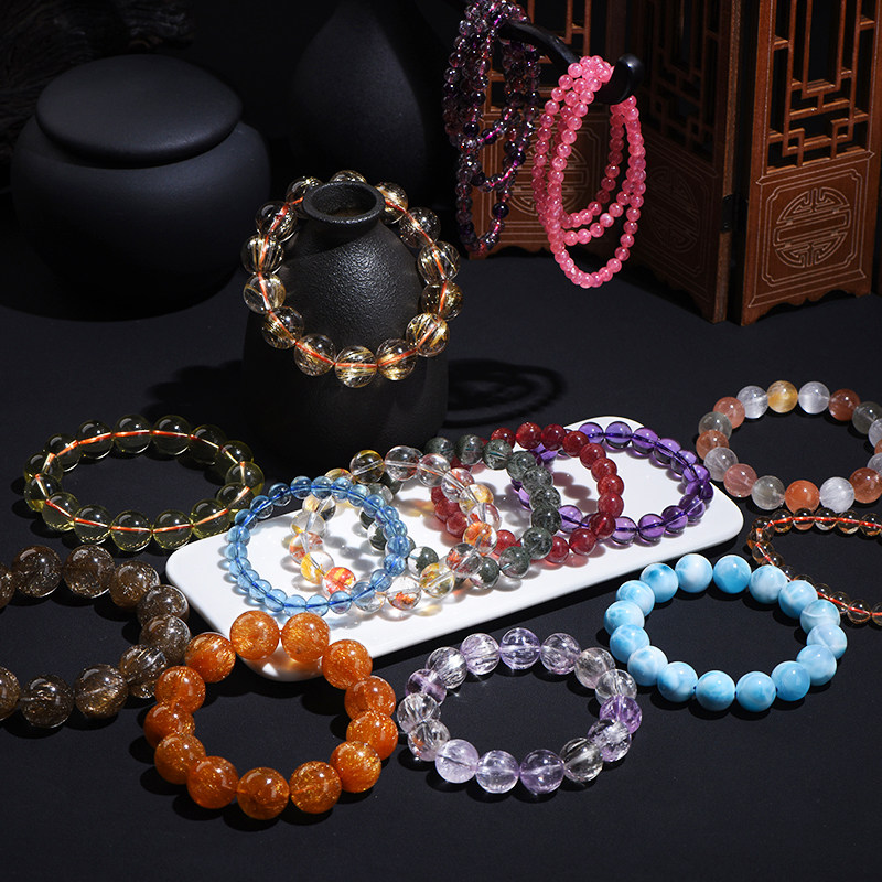 The moon is a small gourd made of Hai Burmese glass, a spicy green and blue water bead, a baby bead elastic bracelet that is exquisite and gentle