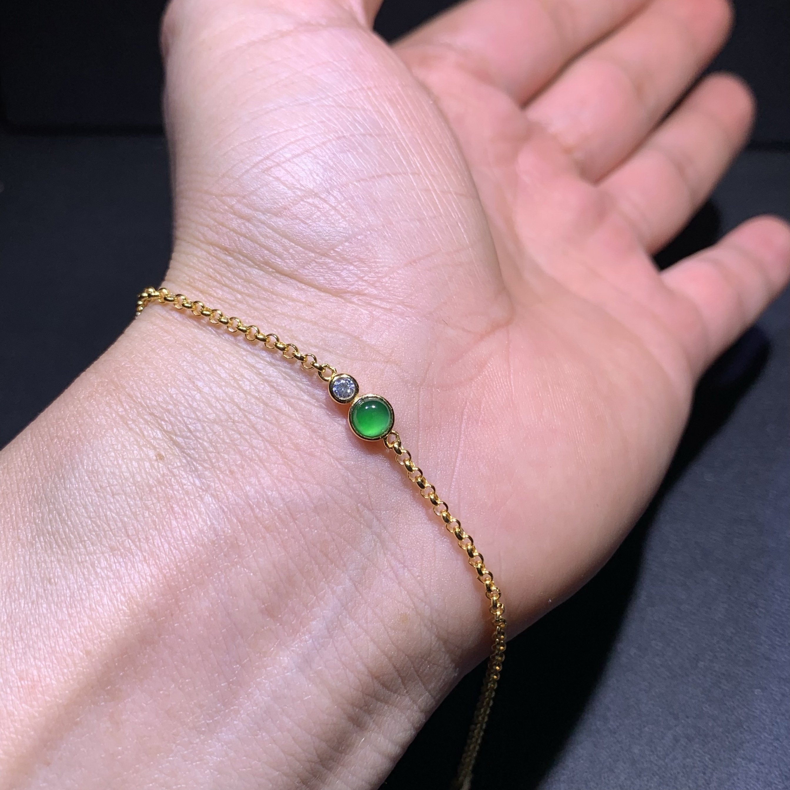 AU Natural Jade Spicy Sunny Green Bracelet 18K Real Gold Bead Haute Couture Jewelry