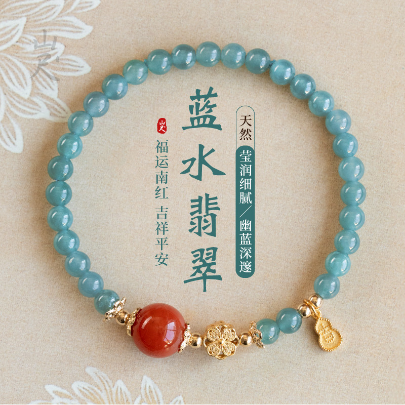 Natural Guatemalan blue water jade millet bead bracelet new Chinese style bracelet broken silver ancient method white bracelet