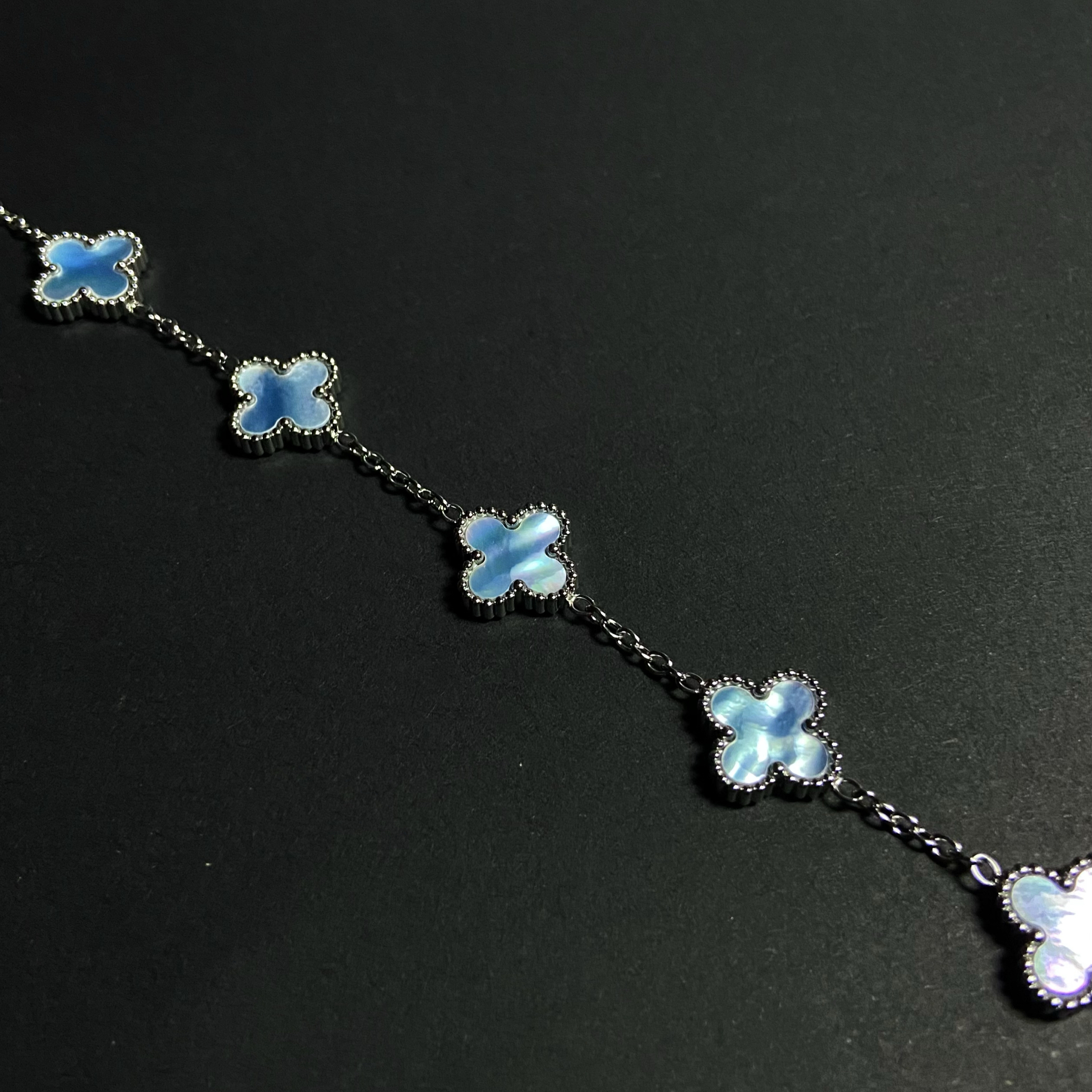 LEFTGO Natural Guatemalan Blue Water Jade Double Circle Bracelet Women's Sterling Silver Plated 5mm Bead Bracelet
