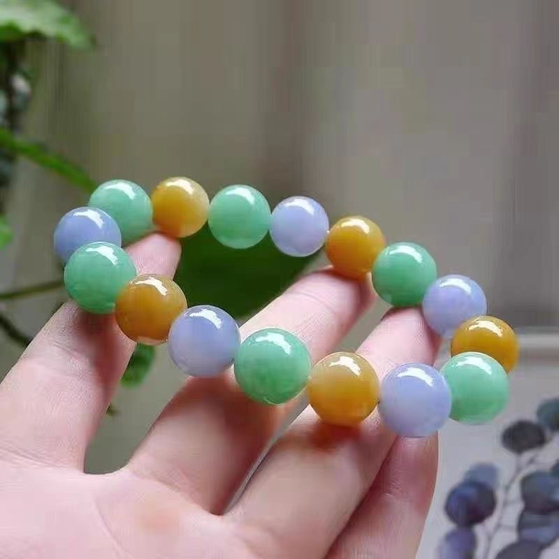Colorful bracelet Yunnan Myanmar jade A goods multi-color solid color bracelet bracelet beaded string men's and women's road road road jade bracelet