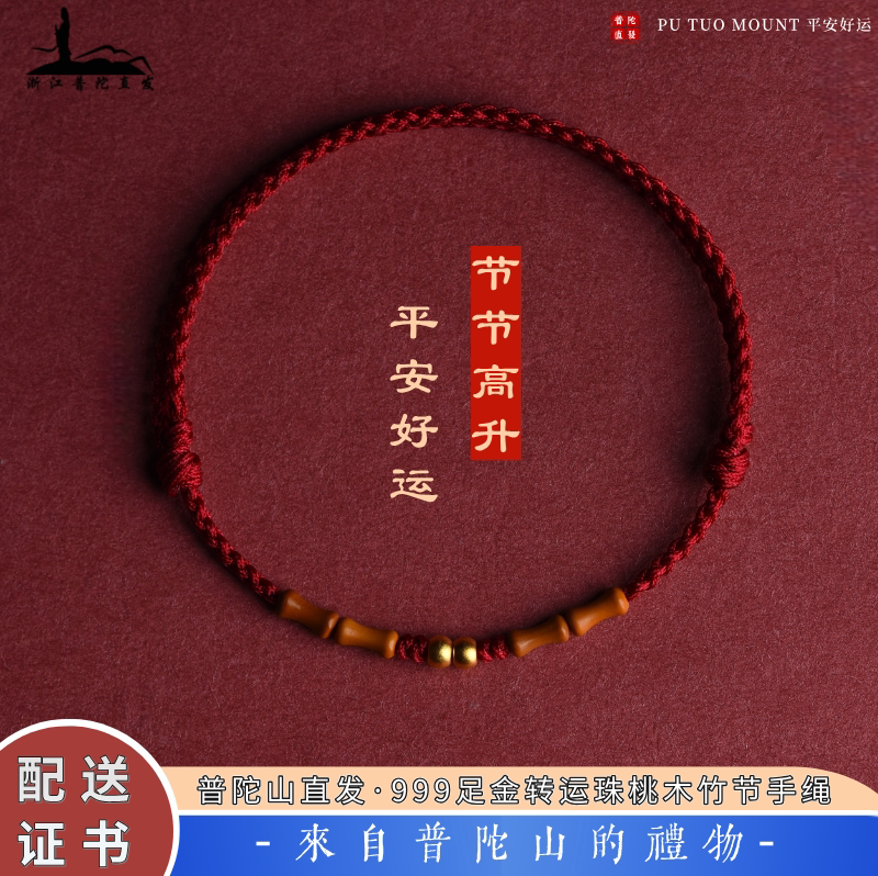 Putuo Mountain Cultural and Creative Collection, 999 feet, gold transfer, beads, red bracelets, ankles, men's and women's peach wood bamboo joints, and the birth year is safe