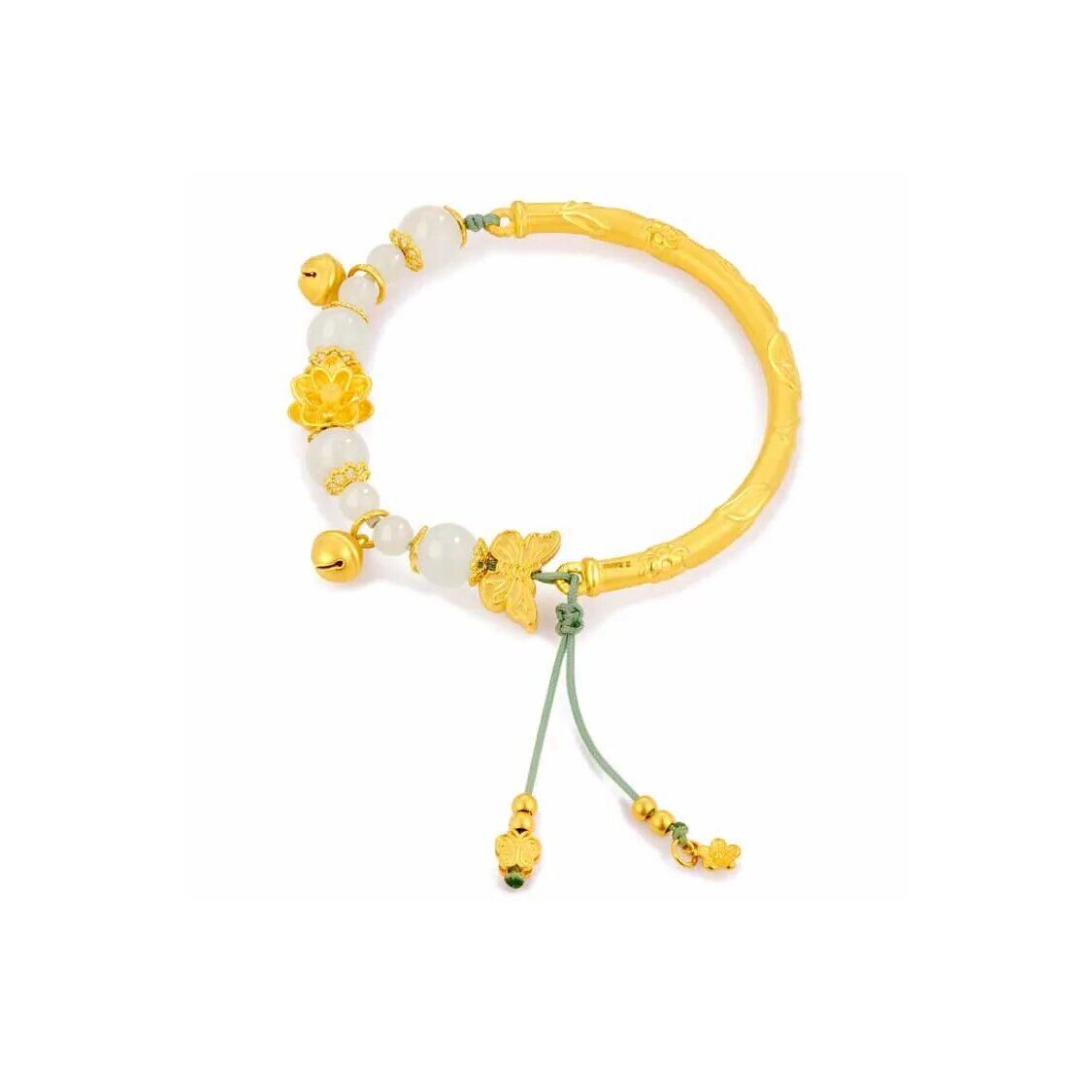 Reno gold lotus bracelet women's new 999 pure gold Hetian jade butterfly half bracelet Mother's Day gift for mother