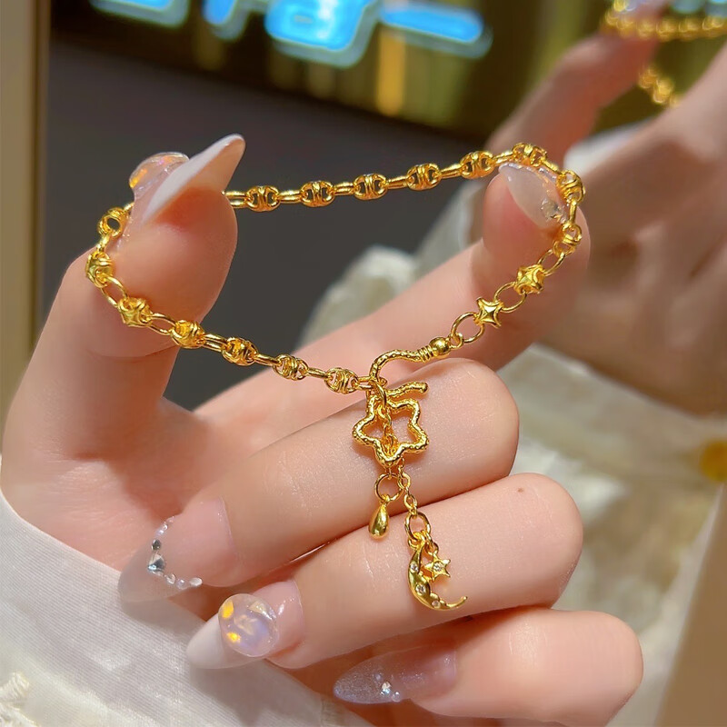 Yisheng gold star moon bracelet women's new 999 full gold star moon bracelet birthday gift for girlfriend
