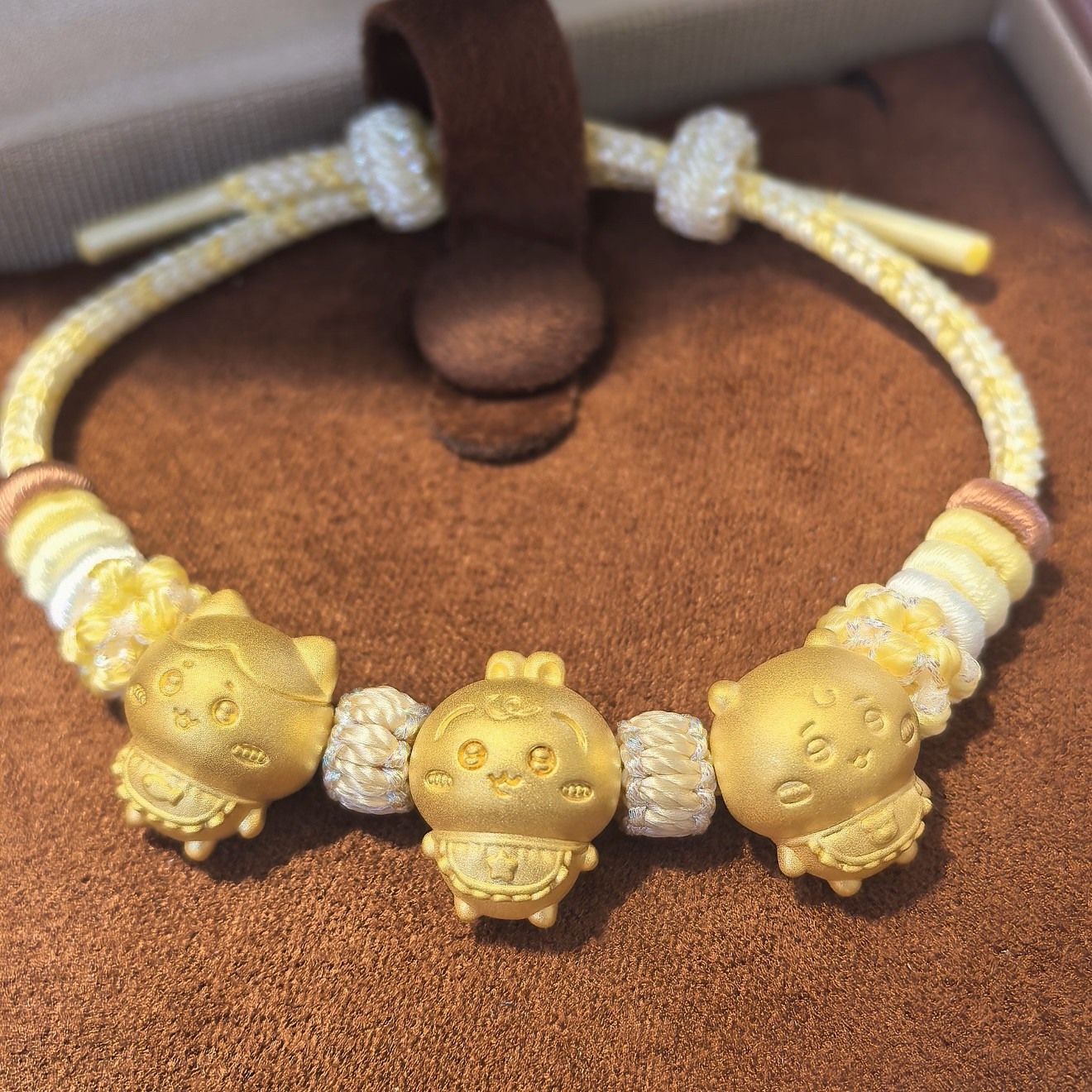 Water shell pure gold 999 baby baby chiikawa transport bead gold Usachi Jii small eight bracelet gift