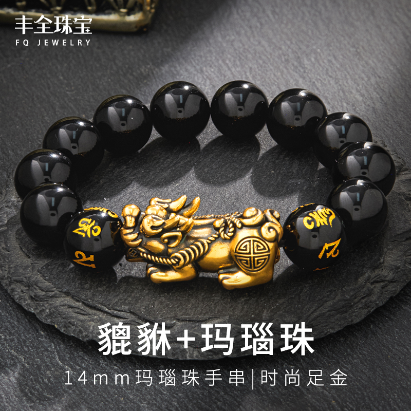 Pure gold Pixiu bracelet men's gold transfer beads to attract wealth and blessings men's black gold bracelet Qixi gift