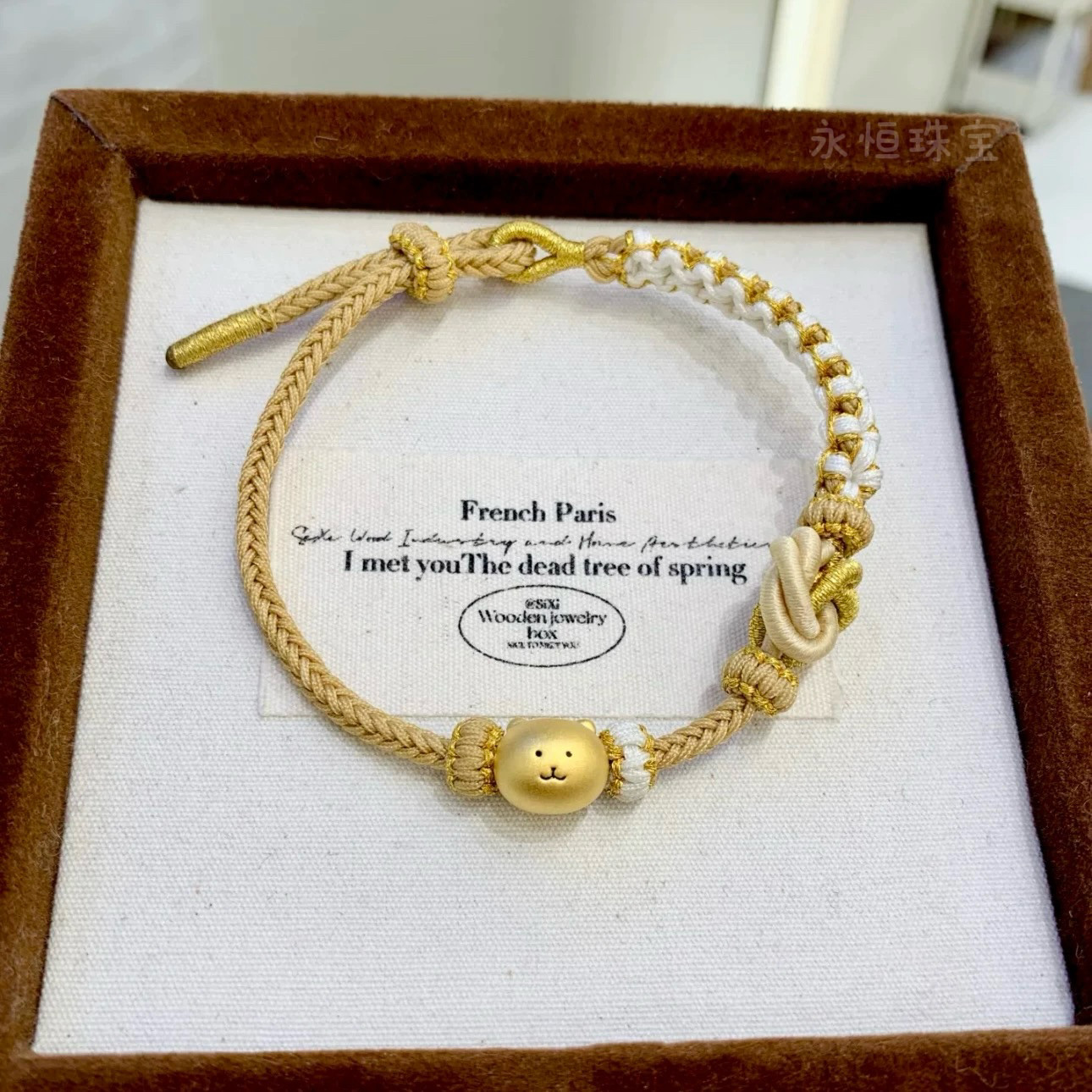 Shenzhen water shell pure gold 999 emoticon self-deprecating bear big white bear transfer bead gold cute bear bracelet gift