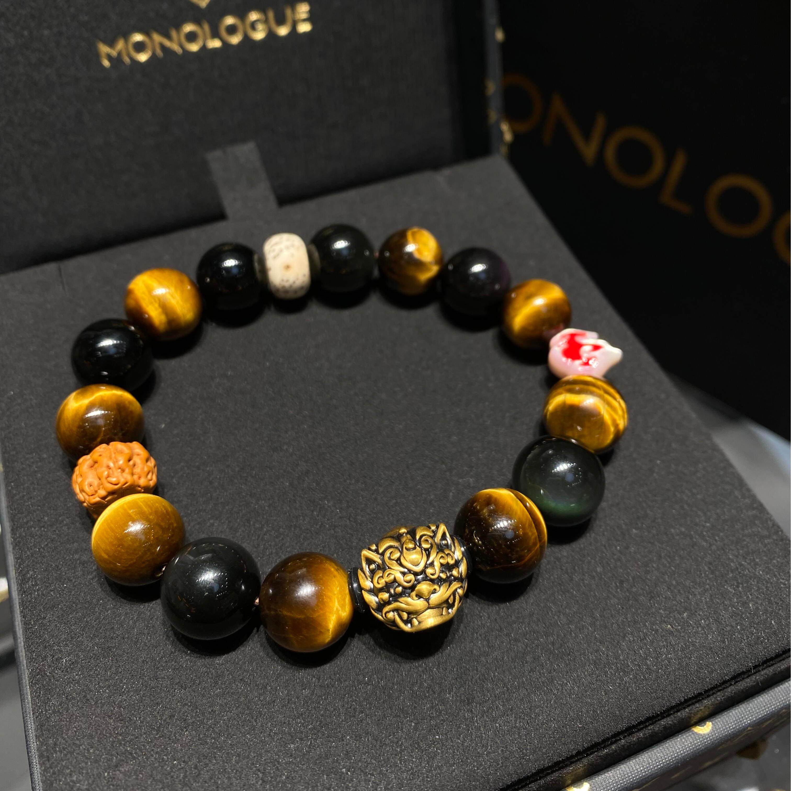 Gold bracelet gluttonous totem pure gold 999 lucky agate transfer bead boy bracelet pure gold gift for boyfriend