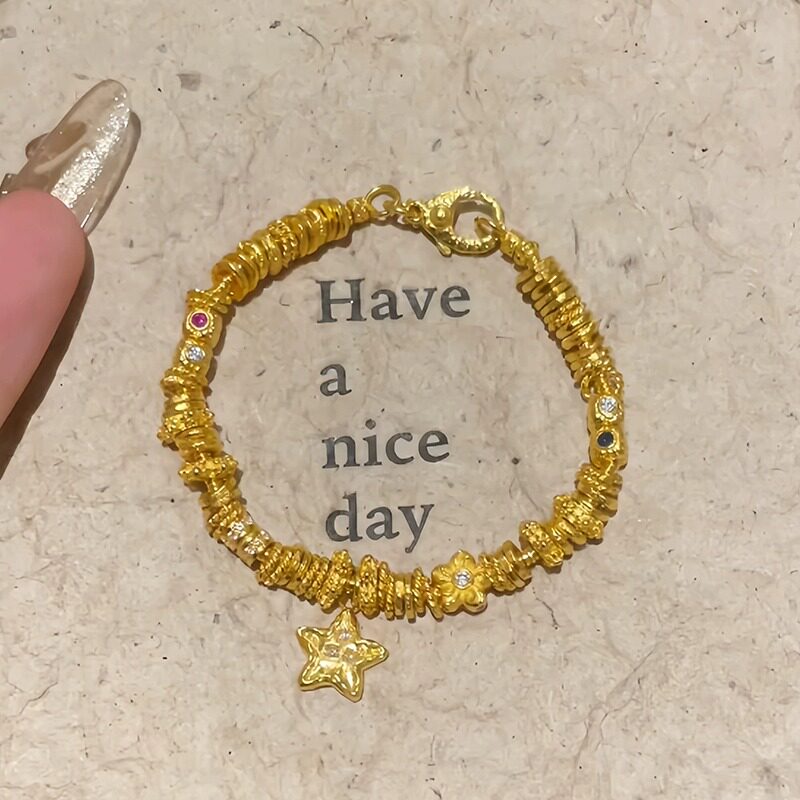 Reno gold star small flower plate bracelet women's new 999 pure gold handmade gold ring bracelet gift for girlfriend