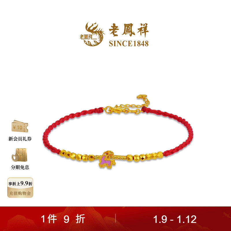 Lao Fengxiang is immediately rich, zodiac horse, gold pearl enamel gold pure gold bracelet, female gift New Year's gift