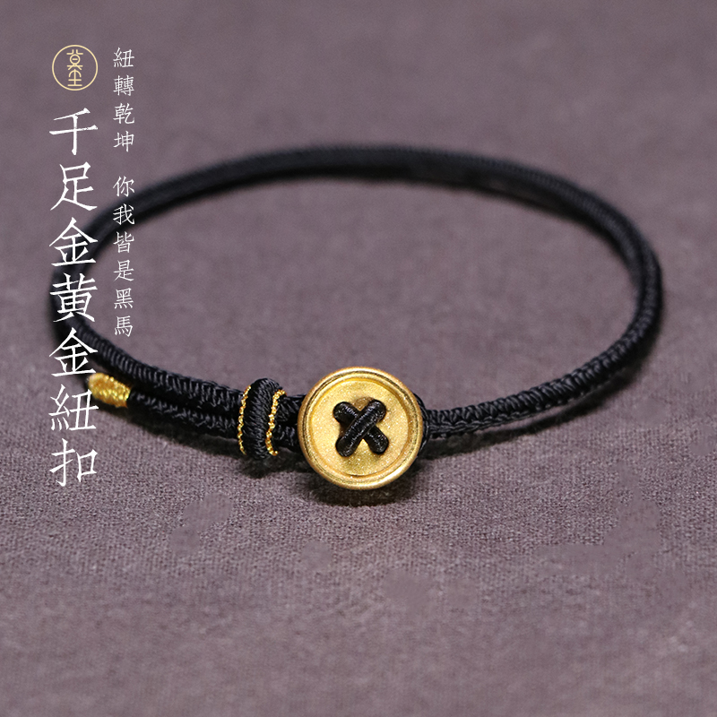 Gold button bracelet men's 999 pure gold transfer bead girl red rope natal year twist the world couple bracelet