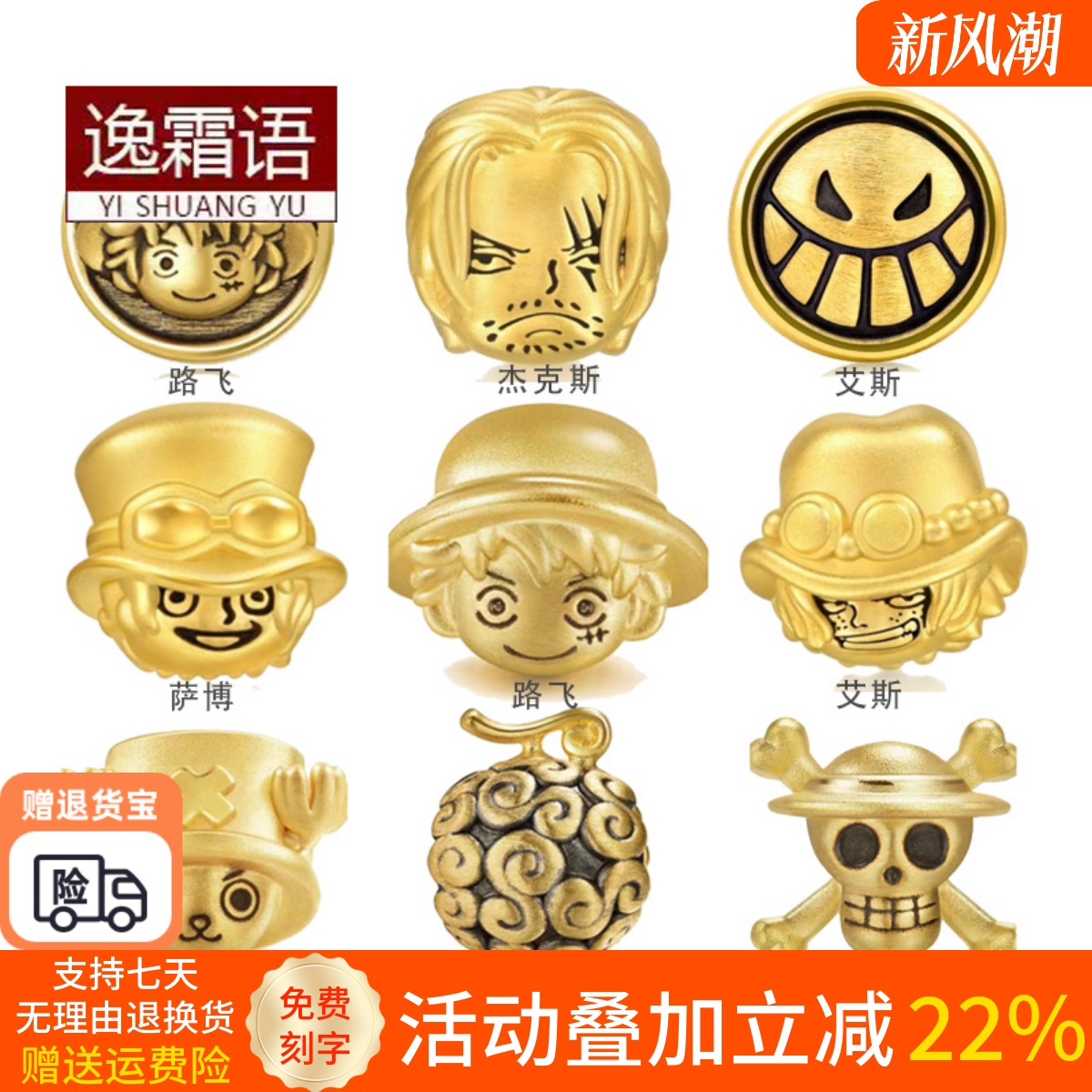 999 pure gold One Piece gold transfer beads Devil fruit Luffy/Chopper 3D hard gold bracelet beaded men's and women's models