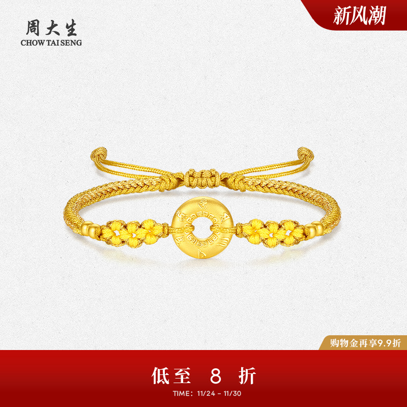 Chow Tai Sheng's gold lotus bracelet women's football gold ruyi peanut hard gold pendant braided bracelet for his girlfriend's birthday gift