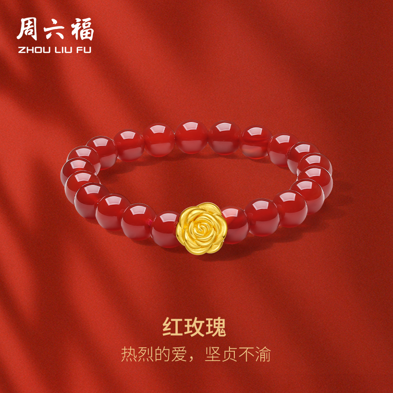 Saturday Fu gold bracelet red rose bracelet women's football gold red agate hand jewelry pricing gift official hand jewelry