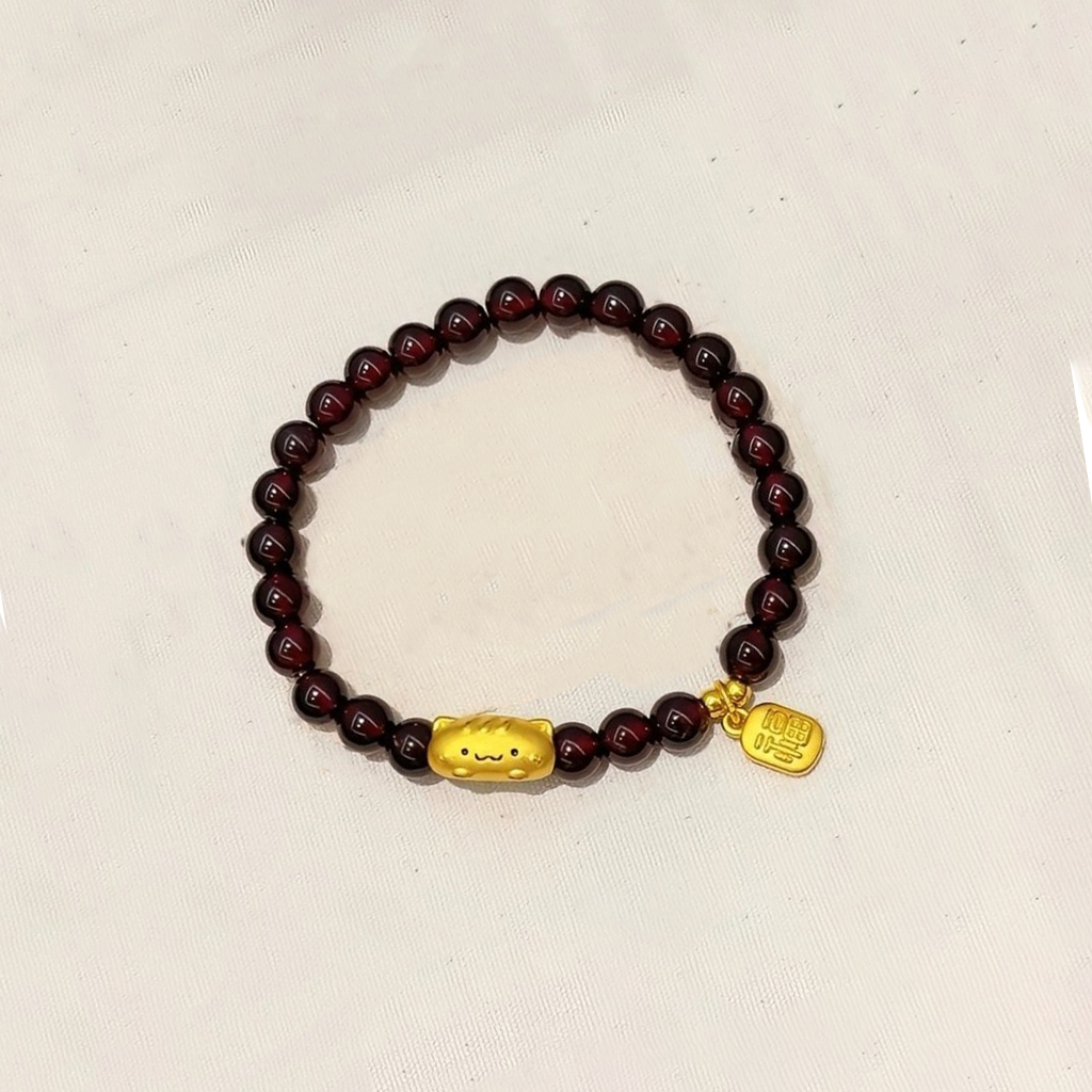 Genuine pure gold 999 gold baguette cat garnet bracelet gold plate wrapped sun stone Valentine's Day gift for girlfriend