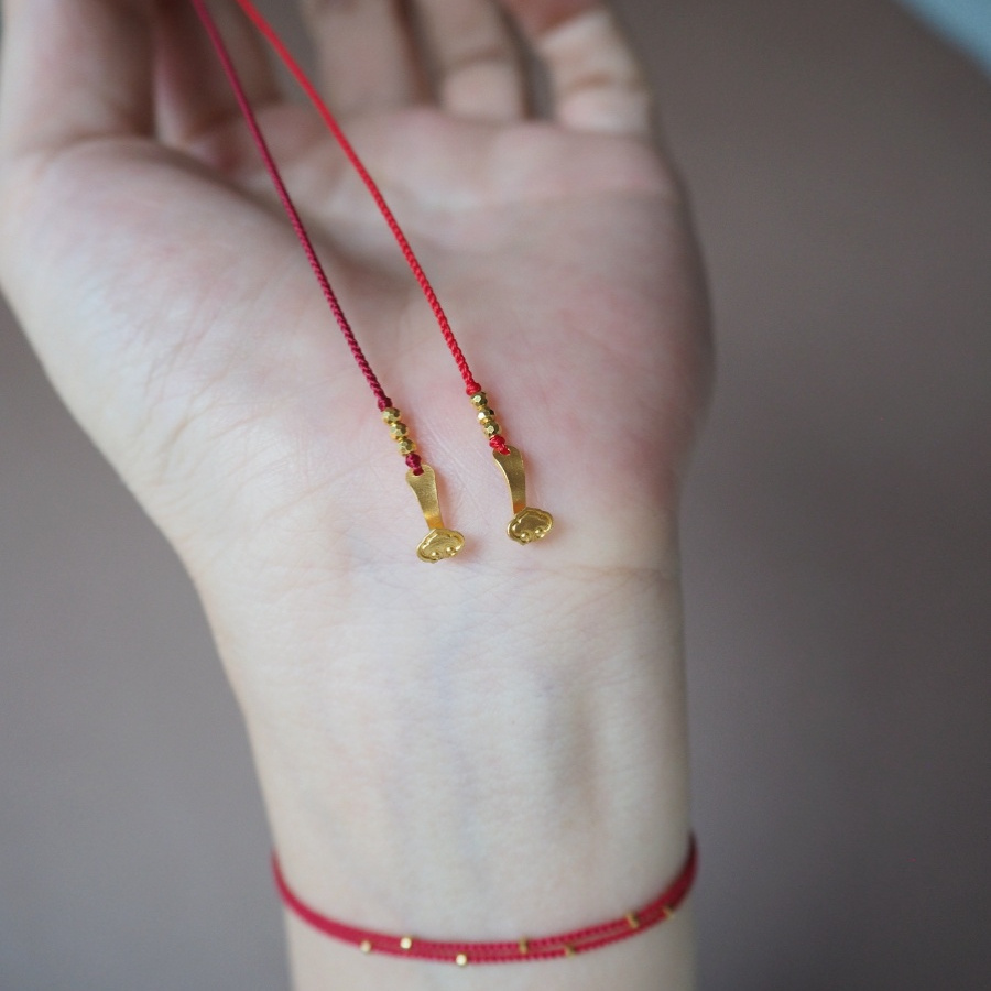Natal year 999 pure gold ruyi red rope bracelet master hand-woven fine and adjustable