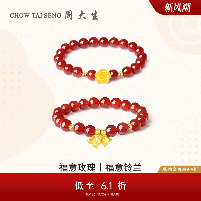 Chow Tai Sang gold bracelet women's pure gold chalcedony lily of the valley rose bracelet birthday gift for girlfriend high-end