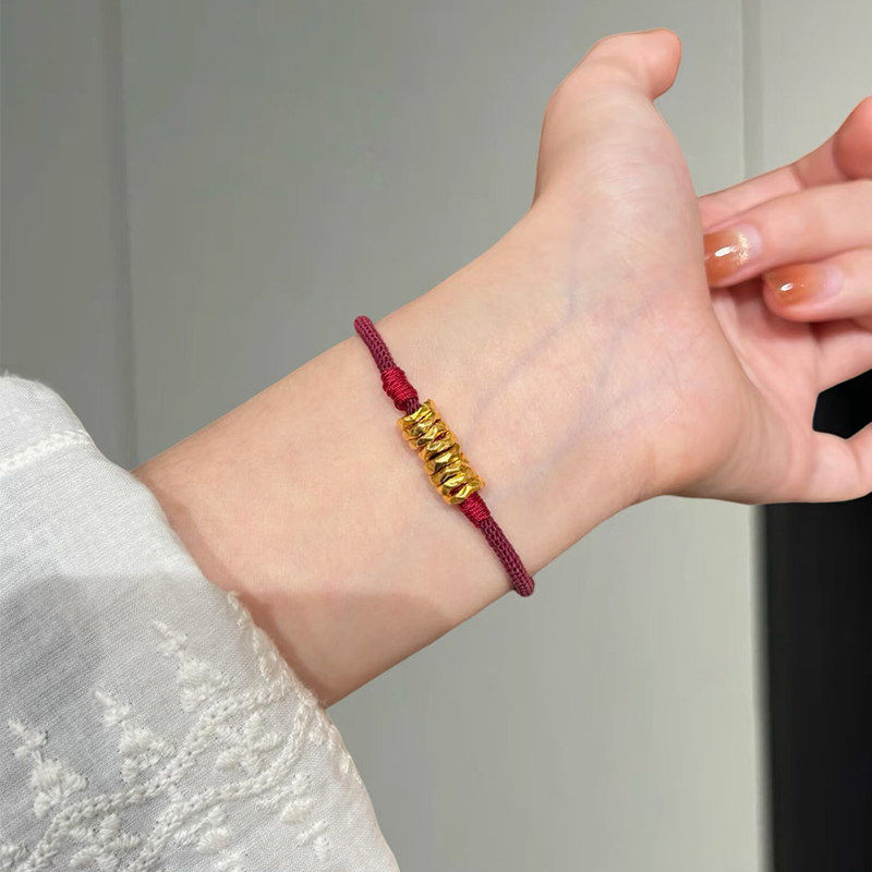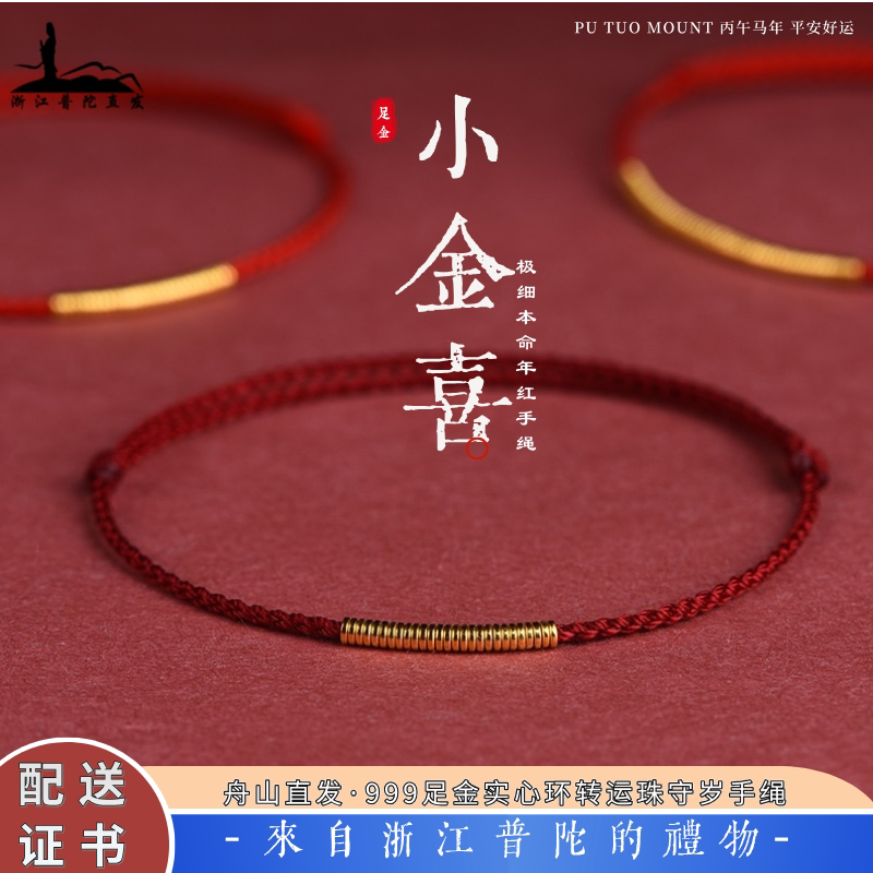 Putuo Mountain Cultural and Creative Collection, 999 pure gold gold ring, woven small red rope broken gold women's bracelet, ultra-fine natal year gift
