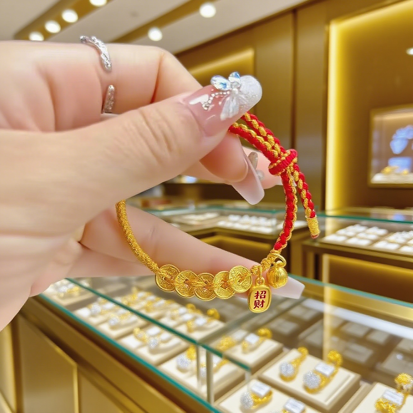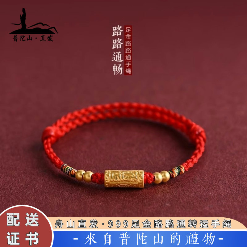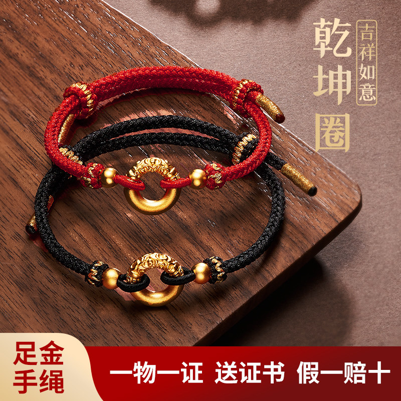 999 Pure Gold Road Road Bracelet Men's and Women's Gold Pure Gold Transfer Beads, Natal Year Peace, Hand-woven Red Bracelet