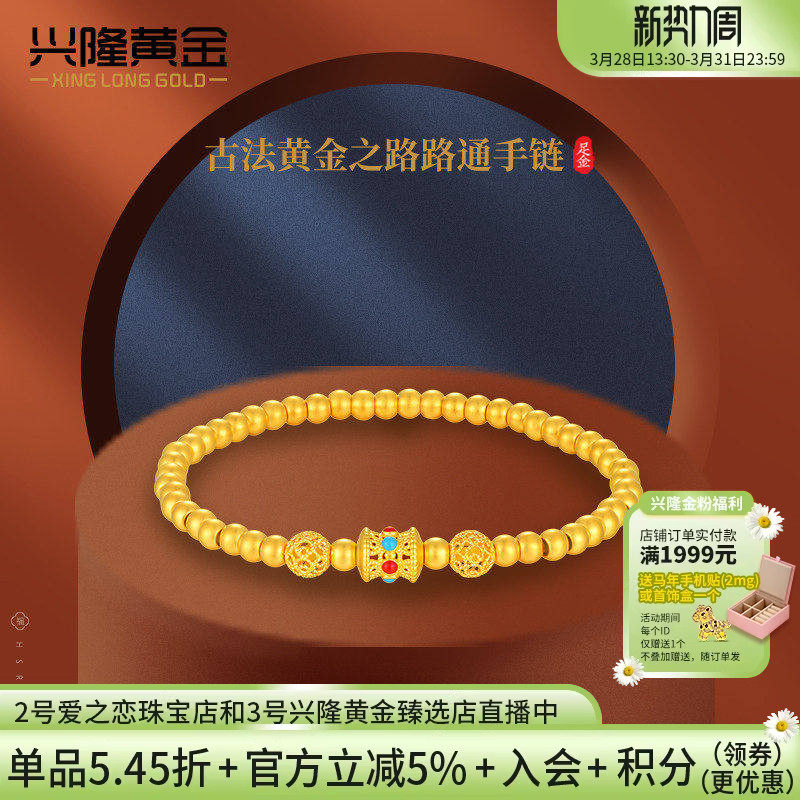 Xinglong gold ancient gold bead transfer bead bracelet pure gold 999 filigree light bead gold bean bracelet beaded for girlfriend
