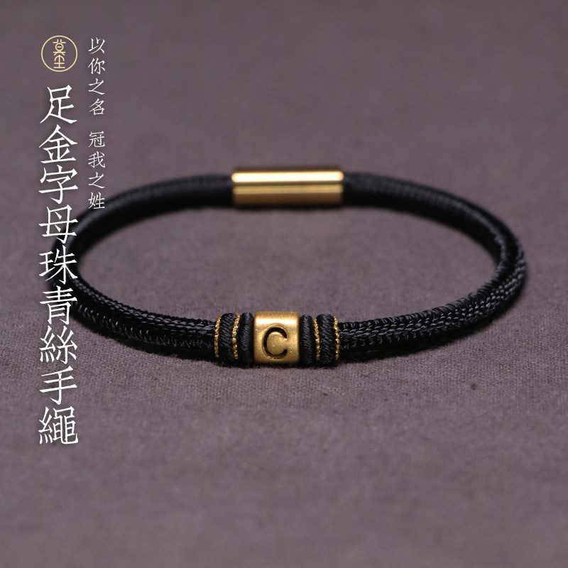 Gold transfer bead bracelet male letter nine times diamond knot can be braided hair, small grams heavy gold couple blue silk bracelet