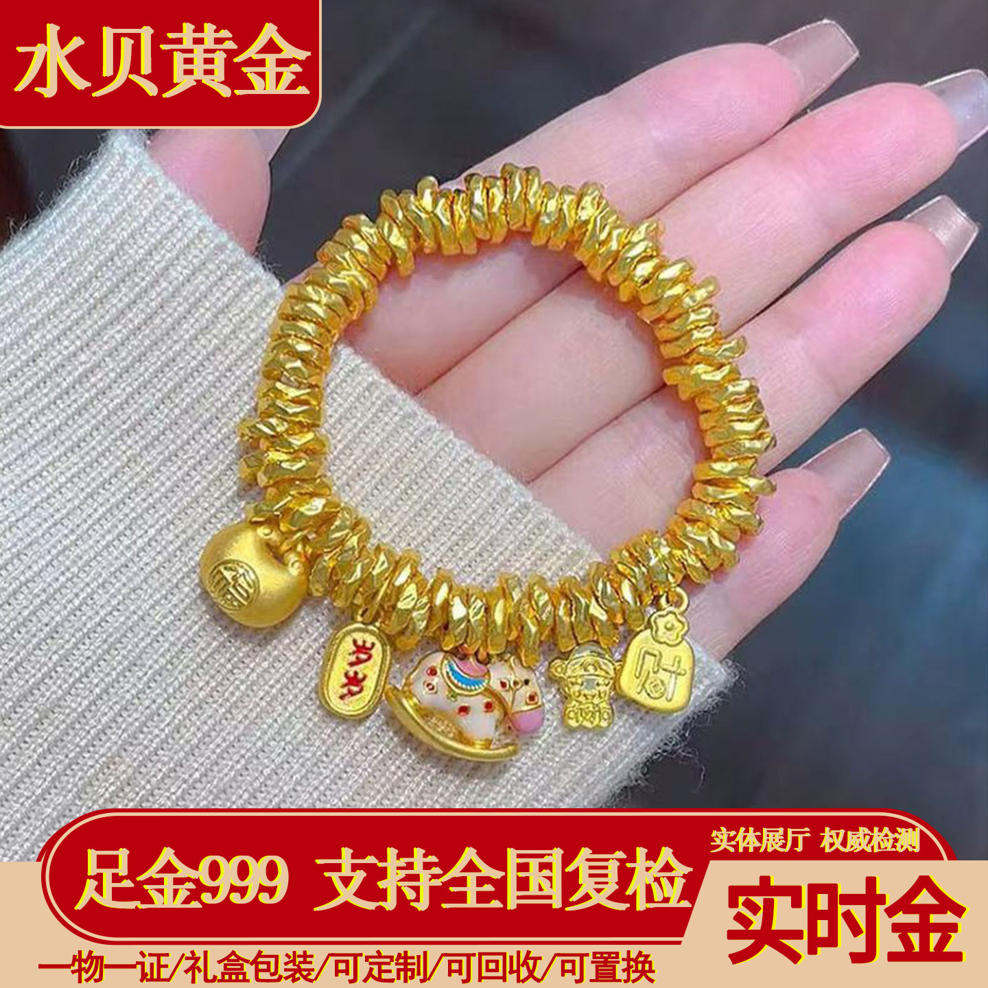 Water shell gold small wooden horse coiled bracelet 999 full gold years of peace little chubby blessing God of Wealth bracelet for girlfriend