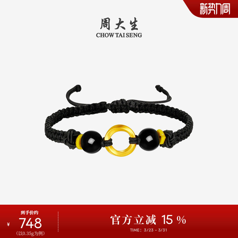 Chow Tai Sheng's gold bracelet women's football gold Mobius ring woven red bracelet hard gold for girlfriend's birthday gift