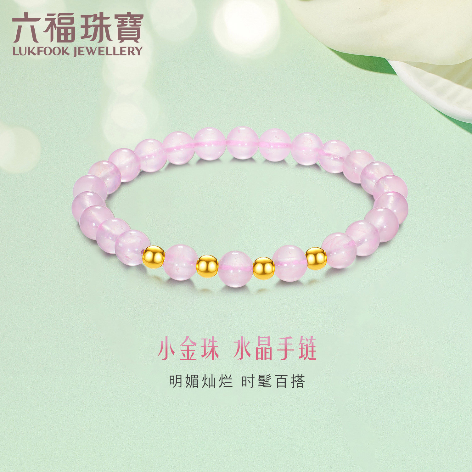Luk Fook Jewellery Small Gold Bead Gold Bracelet Women's 5D Hard Gold 6mm Crystal Bracelet Beaded A03A0007DS