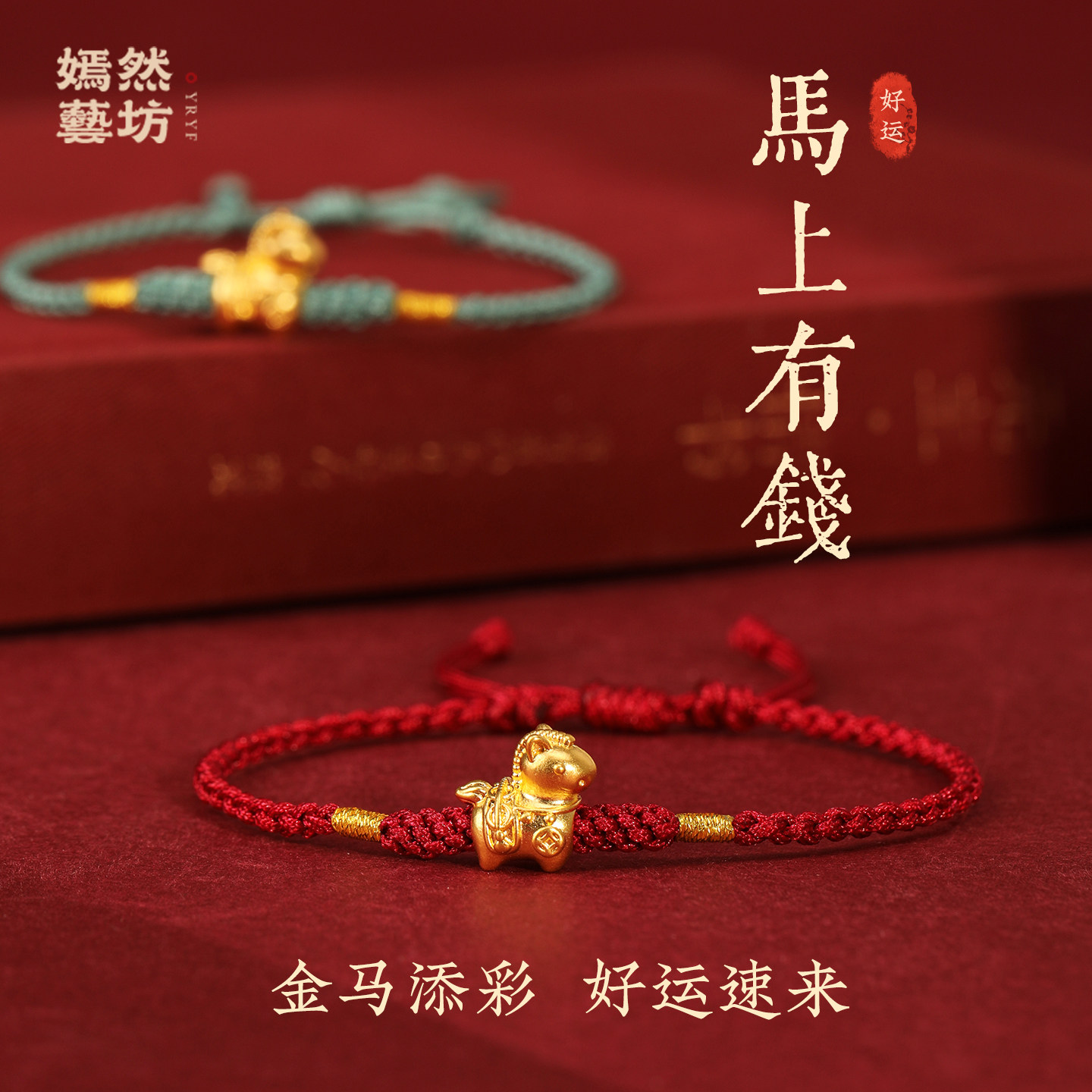 999 foot golden horse natal year red rope bracelet female genuine gold braided good luck red bracelet for the year of the horse high-end men