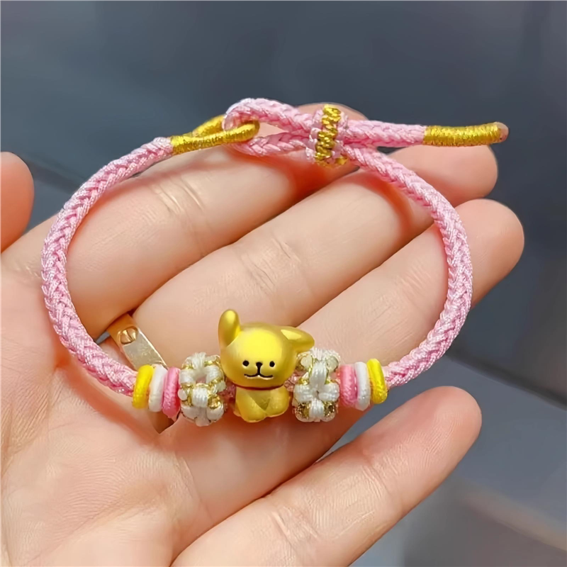 999 pure gold line puppy bracelet female gold natal year cute zodiac dog transfer bead woven bracelet gift