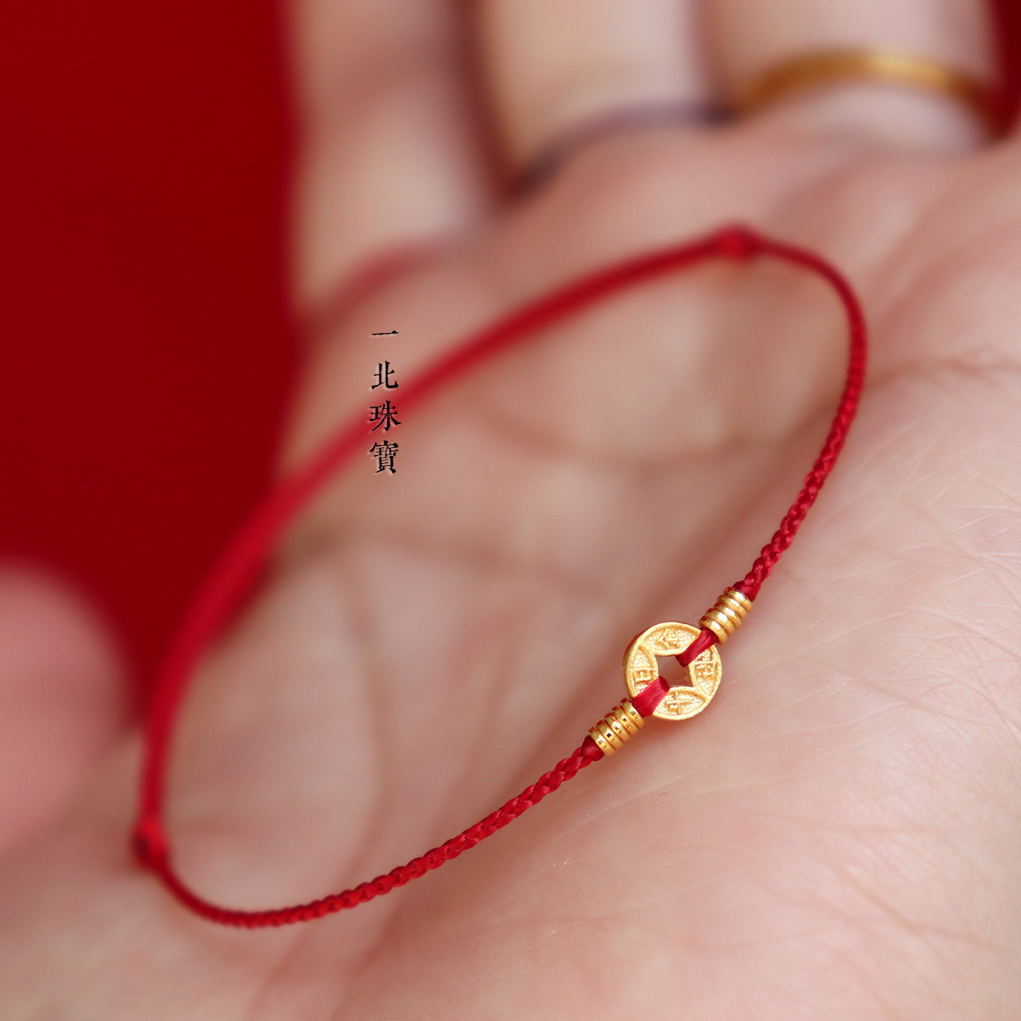 Pure gold 999 days into the bucket gold natal year transfer red rope adjustable gold gold coin hand rope foot rope finely woven extremely finely