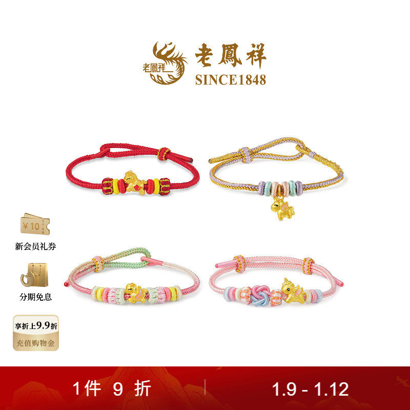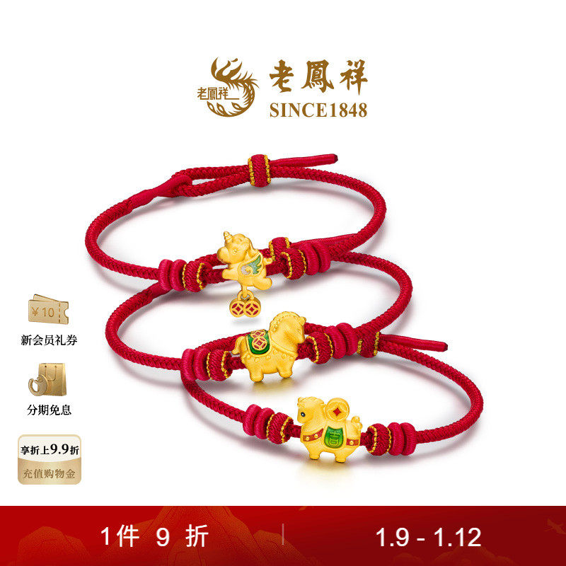 【New】Lao Fengxiang Zodiac Horse Mengmeng Pegasus Weaving Golden Foot Gold Hand Rope Road Road New Year's Gift