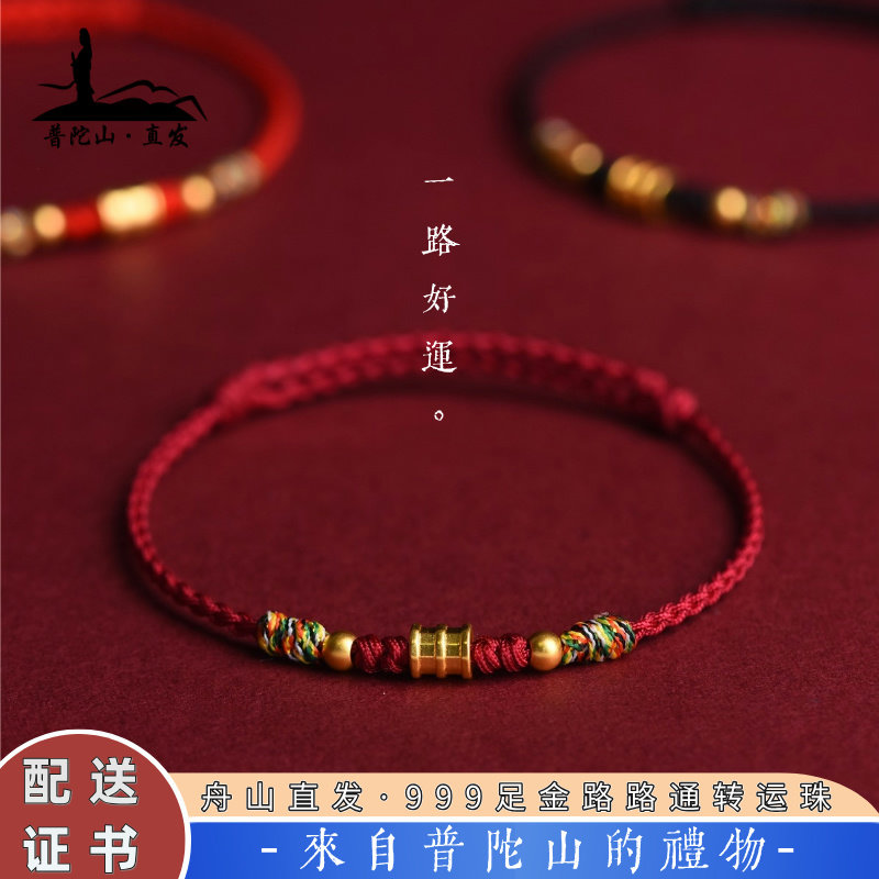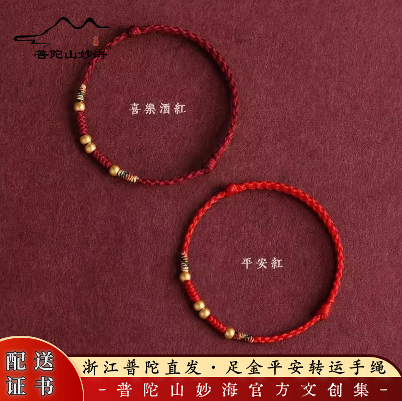 Putuo Mountain Miaohai Zujin Road Road Tong Red Rope Bracelet Men's Women's Natal Year Gold Transfer Bead Woven Bracelet
