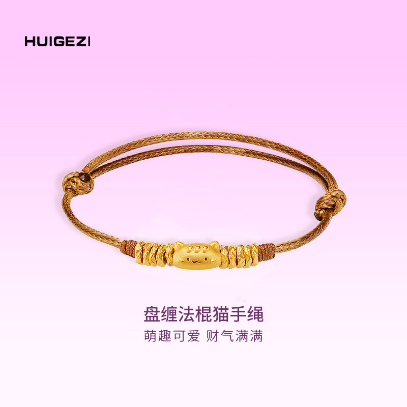 HUIGEZI Gold Baguette Cat Bracelet Coiled Fashion Woven Bracelet 999 Pure Gold Bracelet Gift for Girlfriend