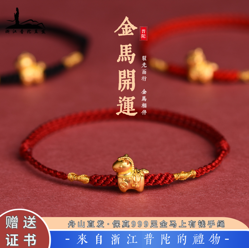 Putuo Mountain 999 feet golden horse natal year red rope bracelet for men and women golden natal year safe and good luck resolution weaving