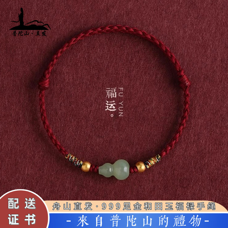 Putuo Mountain Fulu Hetian jade gourd red rope bracelet men's and women's 999 feet gold transfer bead woven bracelet