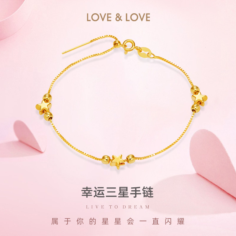 love&love lucky three-star gold bracelet pure gold 999 transfer bead pentagram bracelet for girlfriend gift