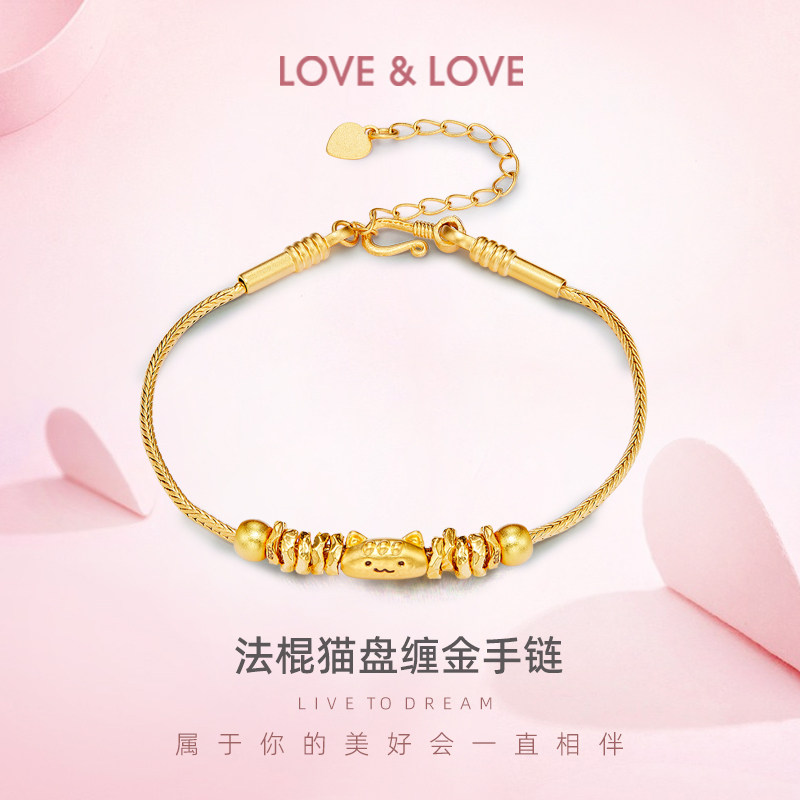 love&love small bone bracelet gold pure gold 999 bracelet jewelry hard gold cute darling gift for girlfriend
