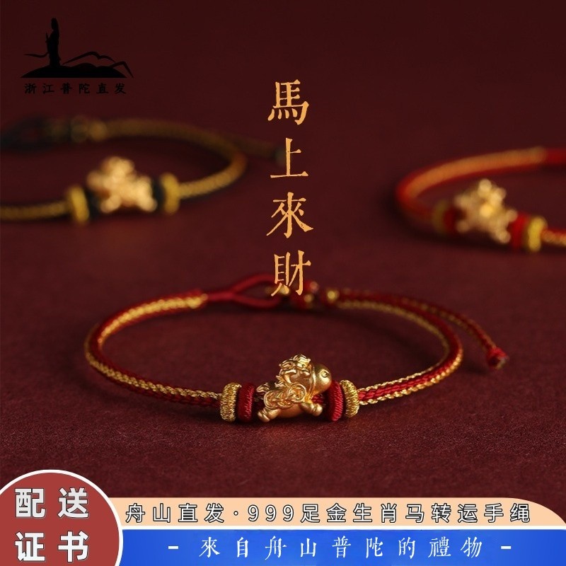 Genuine gold zodiac horse bracelet women's new pure gold immediately has money transfer beads natal year red rope gifts