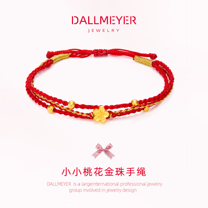 Dallmeyer gold 999 pure gold small peach blossom bracelet transfer bead 5D hard gold bracelet for girlfriend gift