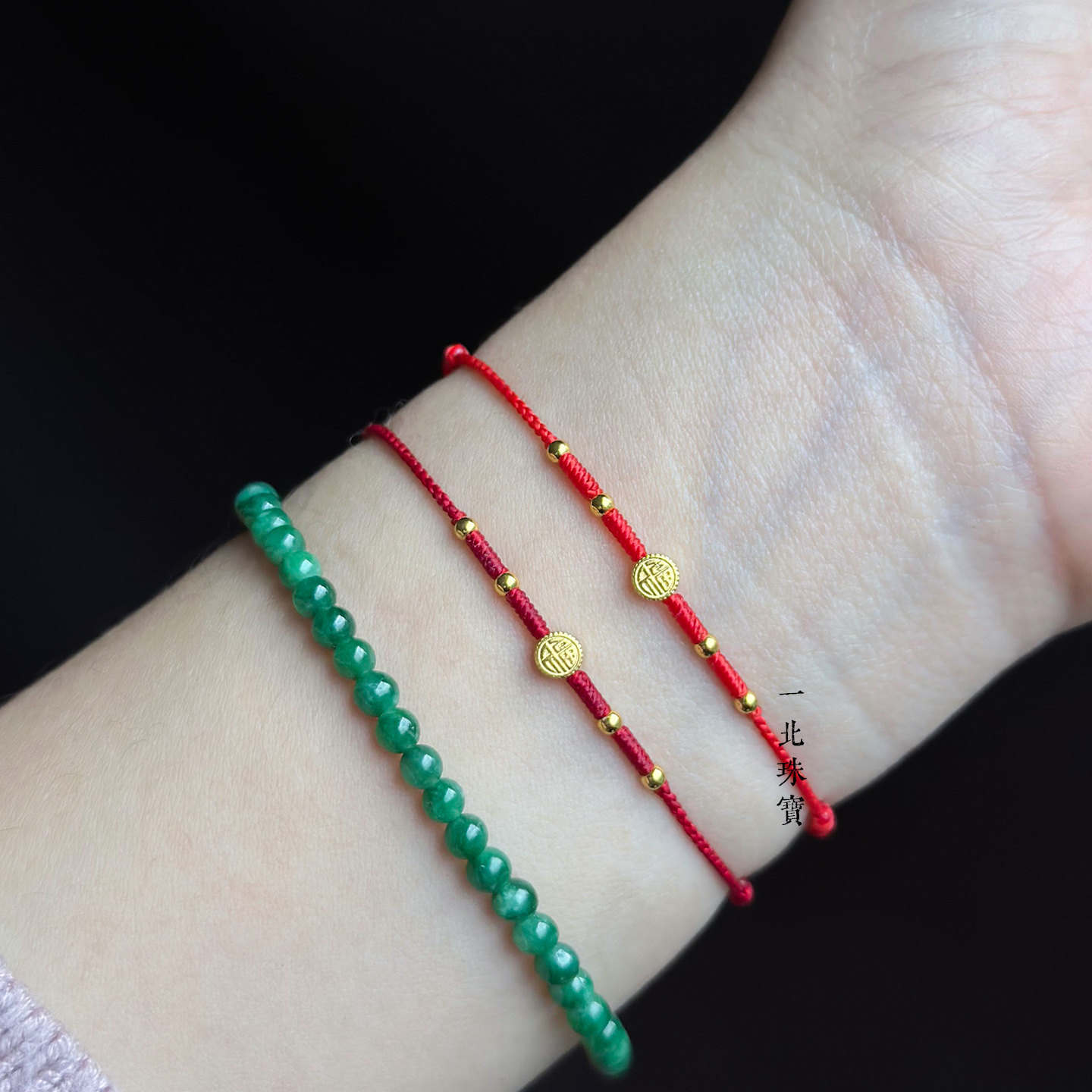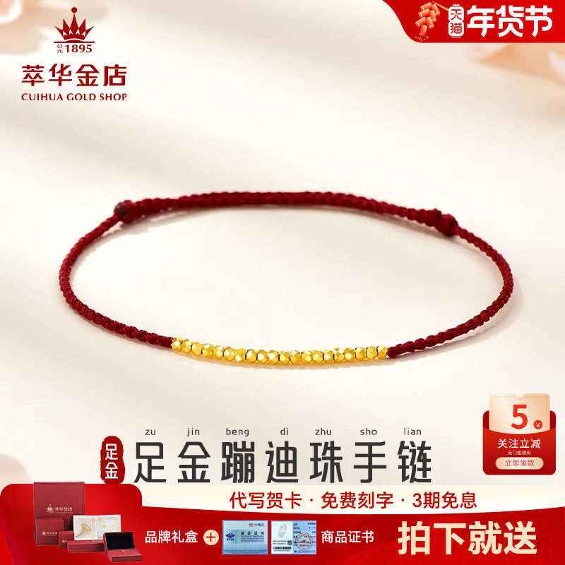 Cuihua gold store gold broken gold bracelet red rope pure gold natal year extremely thin bracelet for girlfriend's birthday New Year's gift