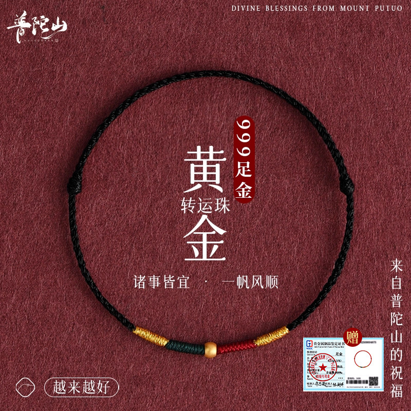 Putuo Mountain 999 pure gold gold transfer bead red rope bracelet ankle chain safe and good luck in the Year of the Horse hand-woven bracelet
